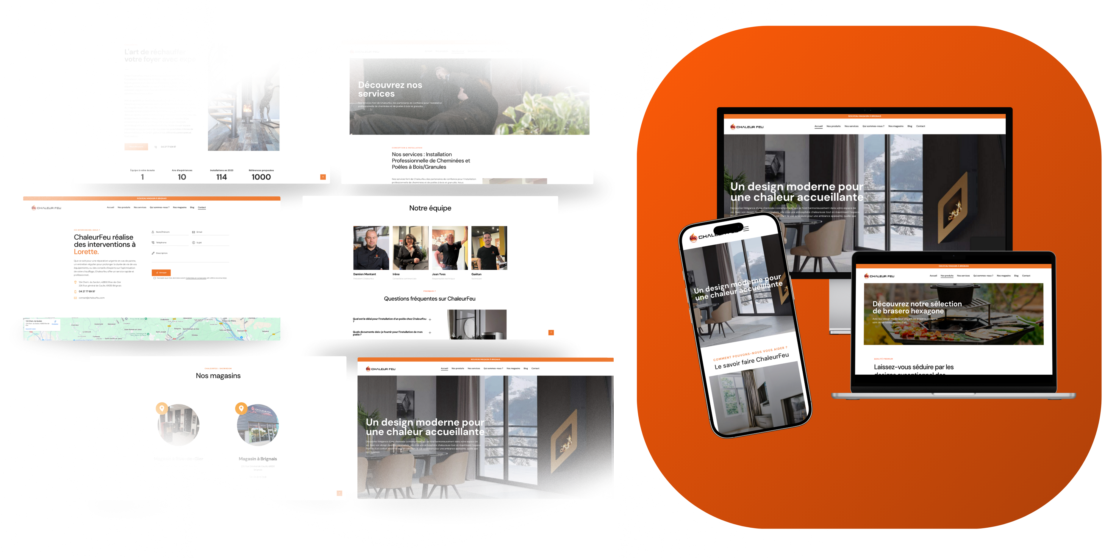La transformation visuelle est radicale, mais elle n’est pas qu’esthétique. Ces maquettes matérialisent la stratégie marketing déployée par notre Squad. Nous avons traduit le positionnement haut de gamme des produits Chaleurfeu en une expérience digitale fluide et immersive. Chaque élément de l’interface a été pensé pour gommer les frictions et guider intuitivement le visiteur vers l’objectif final : la prise de contact et la visite en showroom.
